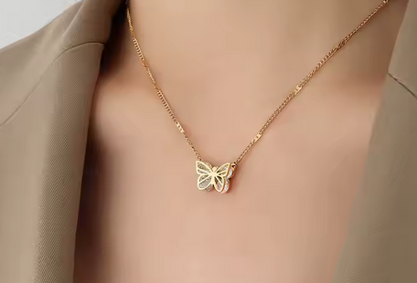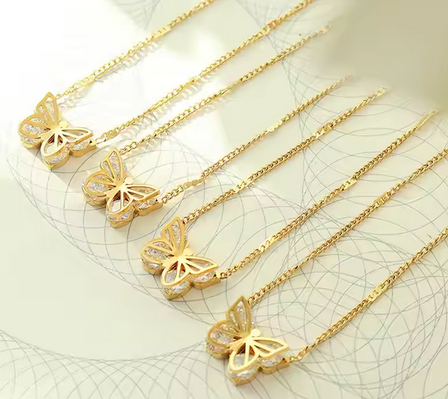 Material : Edelstahl, 18 Karat Vergoldeter Schmetterling mit Zirkonia