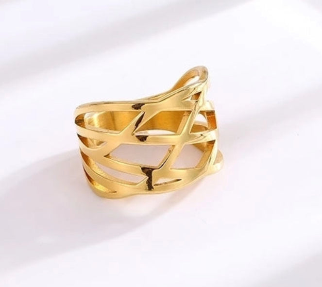 Der Celina-Ring überzeugt durch sein markantes, strukturiertes Design und den warmen Glanz. Die leichte Wölbung und die eingravierten Linien verleihen ihm eine moderne, kraftvolle Ausstrahlung, ideal für alle, die ein dezentes, aber besonderes Schmuckstück suchen.