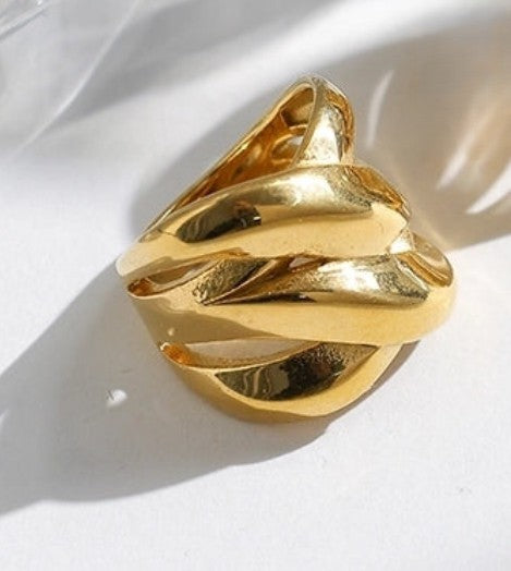 Der Dione-Ring überzeugt durch sein markantes, strukturiertes Design und den warmen Glanz .Die leichte Wölbung und die eingravierten Linien verleihen ihm eine moderne, kraftvolle Ausstrahlung ideal für alle, die ein dezentes, aber besonderes Schmuckstück suchen.