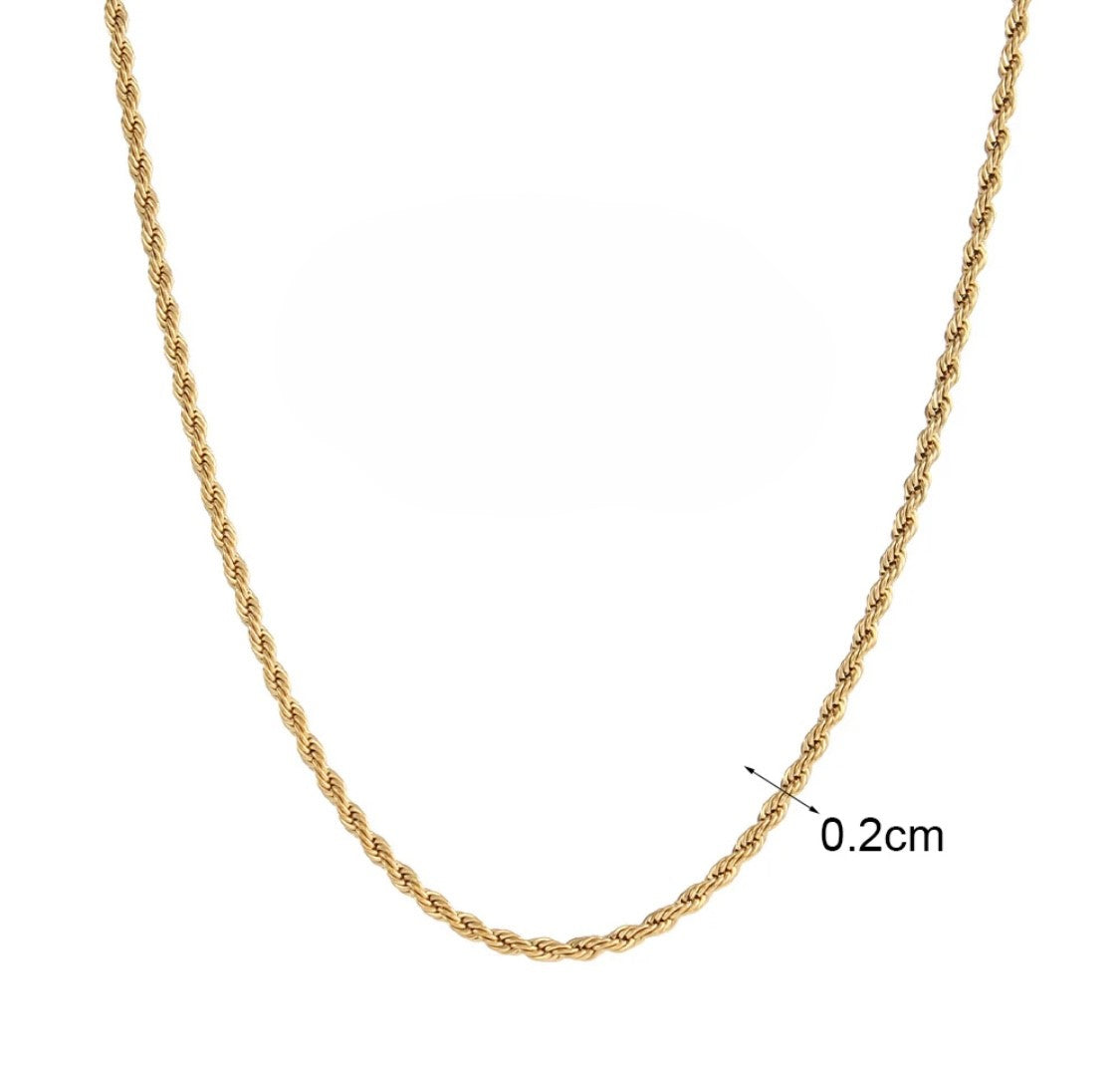 Unsere Twist-Halsketten bestehen aus Edelstahl mit 18Karat Vergoldung – zeitlos, kombinierbar und mit Liebe zum Detail gefertigt, nicht nur wunderschön, sondern auch wasserfest – gemacht, um dich durch den Alltag zu begleiten.